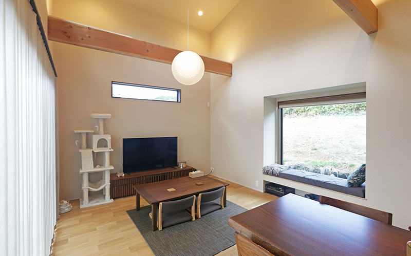勾配天井や間仕切りを減らすことで、デザイン性と開放感を一気に創り出せますが、ちょっぴり落ち着かない気分になる方もいらっしゃるのではないでしょうか。