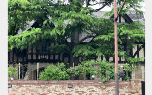 当時、日本化して行く洋館の中で、イギリスのチューダー様式でまとめられていますところから中道軒(ちゅうどうけん)と名づけられました。急勾配の瓦屋根に煉瓦積の煙突を付け、鉄筋コンクリート造でありながら妻面には太い柱型を見せたハーフティンバー(半木造)によって変化に富んだ外観となっています。