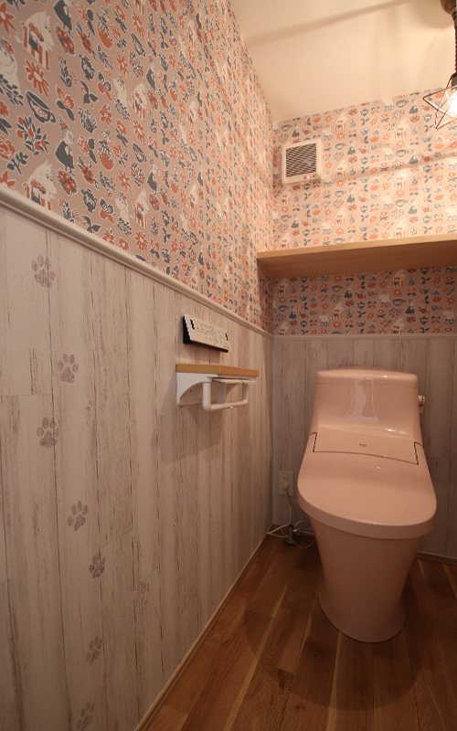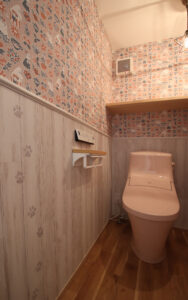 ピンクの便器は内装が殺風景だと浮いてしまいがちなので