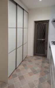 キッチンの扉もホワイトで壁もホワイトですと、すっきりとしすぎた印象になってしまいますが、床に少し色やデザインを入れると印象が変わります。