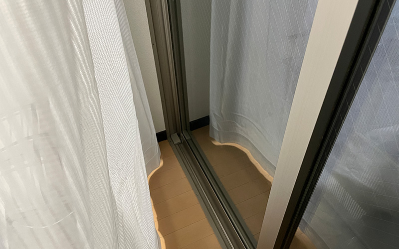 (断熱カーテンでサッシ全体を塞ぐと冷気の流入を抑える効果があります。)