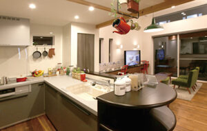 キッチンはL字型を採用してスペースをうまく使い、家族の様子を見ながら料理をすることができる間取りです。