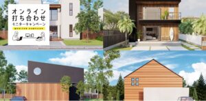 | 対象条件 | 対象期間中に新築注文住宅・リノベーション工事・戸建て/マンションの仲介物件購入をご契約したお客様で、『オンラインお打ち合わせキャンペーン』にお申し込みされた方が対象となります。 契約時以外のお打ち合わせを全てPC・スマートフォン・タブレットを利用したオンラインでの打ち合わせとさせていただきます。 各コースにおけるモニター条件の詳細は担当スタッフまでお問い合わせください。 |