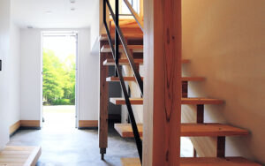 埼玉県岩槻区西町 S様の無垢の家は、駅徒歩10分の閑静な住宅地にある木目をアクセントとした黒のガルバリウムの外観が印象的なシンプルモダンな無垢の家です。ロードバイクなどアウトドアが趣味のご家族で、間取りには広々とした玄関土間を取り入れています。無垢材の床など木の温もりを感じる事もさることながら室内をグラフテクトのキッチンを採用したインダストリアルなかっこいい雰囲気で統一しました。無機質と自然素材が見事にマッチしたミニマルなインダストリアルハウスです。今回は特別に2日間だけお借りすることができ、見学会を開催する運びとなりました。お施主様のこだわりが随所にみられますので是非、この機会をお見逃しなく。