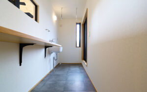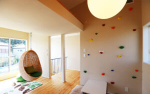 お家時間が楽しめるボルダリングと家事室のあるシンプルモダンな無垢の家