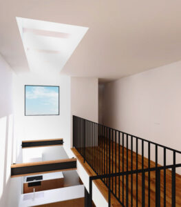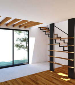 吹き抜けに面したフリースペースは、自然光を取り入れる大きな窓で物干しスペースやプランターで植物を吊るしたりすることができます。