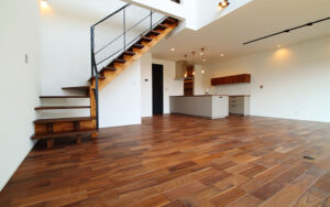 子育て世帯が暮らす各個室と回遊性のある高性能の無垢の家