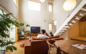 完成したお住まいは、吹き抜けで大きな窓から明るい光が差し込む多角形リビングに、3本の柱を見せる”表し”でワークスペースを設け、家族の気配を感じつつ在宅ワークに集中できる空間となっています。2帖半あるSICや広々としたWIC、2階の納屋など、こだわりの収納スペースが魅力的となっております。今回は特別に2日間だけお借りすることができ、見学会を開催する運びとなりました。お施主様のこだわりが随所にみられますので是非、この機会をお見逃しなく。