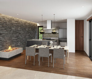 火のゆらぎには、人を癒す効果があります。ダイニングに目で見て楽しむ暖炉を採用し、火を愛でながら食事を楽しむことができます。ヴェネタクッチーネの美しいキッチンは、料理の時間も楽しく演出してくれます。