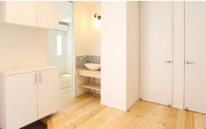 玄関を入ると、すぐに手洗いスペースがあります。風邪や花粉の季節も、ドアノブを触る前に清潔にできます。お子様の手洗い習慣にも、おすすめの間取りです。