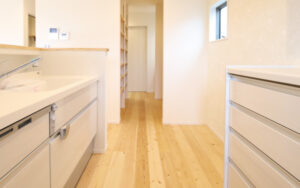 ゆとりのある暮らしをするため、家事の動線にとことんこだわりました。水回りをまとめ、回遊性の高い暮らしやすい間取りに仕上がっています。