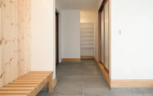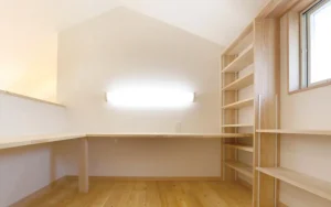 埼玉県さいたま市緑区に1階まで垂れ下がる大きな屋根が印象的なお住まいが完成しました。土地の購入をきっかけに家づくりを検討されていたT様。内装関係のお仕事をされているご主人は、家の性能や質、デザインの自由度など総合的な判断で無垢スタイルを選ばれました。ご夫婦それぞれのお母様と同居する二世帯住宅です。1階と2階にそれぞれの浴室と個室を設け、LDKは共有空間に。プライバシーを確保しながら、家族のコミュニケーションも大切にした間取りです。ご実家の売却もサポートさせていただき、同居するお母様のため、1階はバリアフリーに。約20畳のLDKは、近くに住む娘様ご家族が遊びに来られた時もゆったりくつろげる広さです。コンロとシンクが分かれたセパレート型のキッチンは、作業スペースが広く、家族で料理を楽しむこともできます。他にも、薪ストーブのお手入れもしやすい玄関土間や開放感があるフルオープンサッシの窓、寝室横の大型ウォークインクローゼット、吹き抜けを見下ろせるワークスペースなど見どころ満載のお住まいです。高気密高断熱で、家族みんなが快適に過ごせるお住まいをぜひ、ご見学ください。