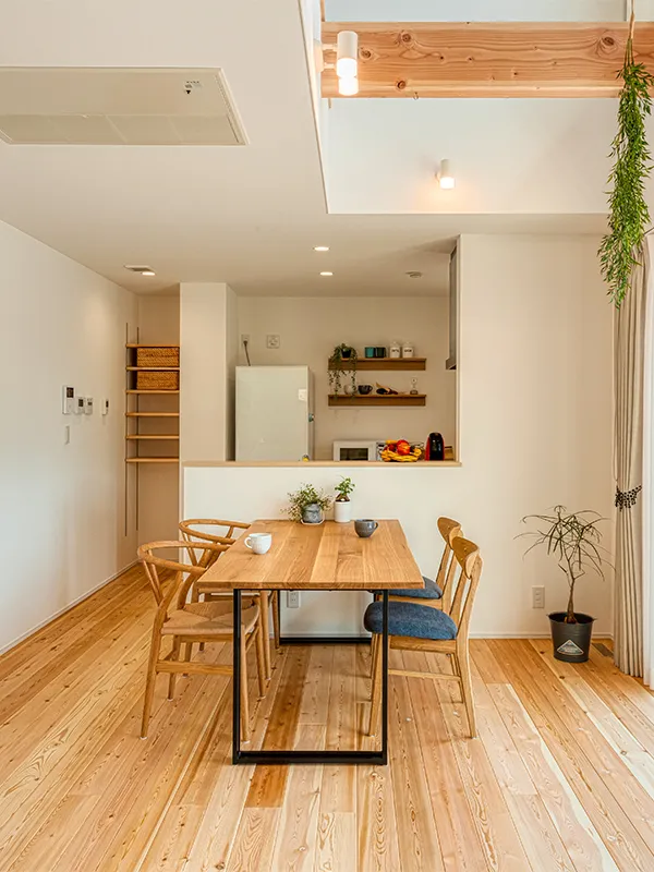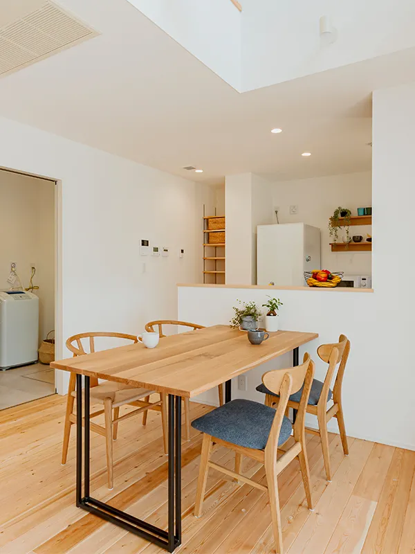 対面キッチンのダイニングはキッチンから配膳しやすいレイアウトで、食事をスムーズに楽しむことができます。