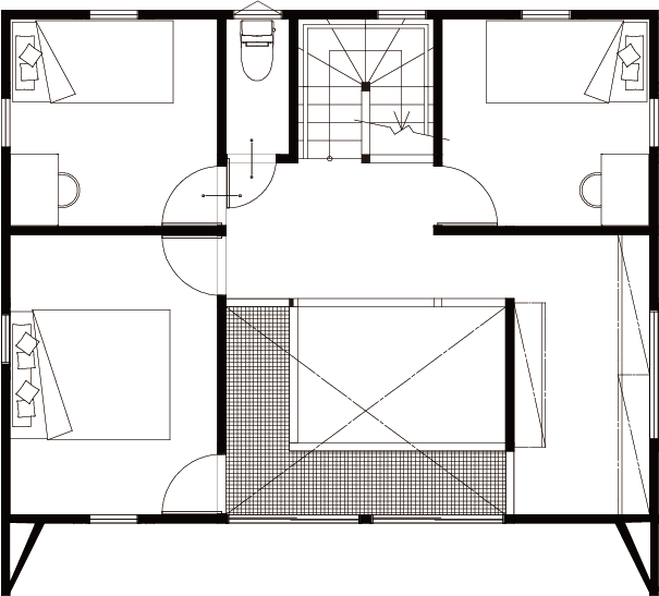 大きな吹き抜けは2階のホールまでをも一つの空間として捉えることができます。1階と2階の間でも、すぐに声をかけあって家族の顔を見ることができるので、コミュニケーションも活発に。家全体が一体となる住まいでは、2階ホールもフリースペースとして自由に活用することができます。