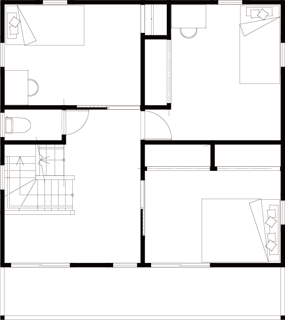 2階の広々としたホールには、テレワークや趣味に集中できるフリースペースを設けました。バルコニーに面しているため、明るく開放的な空間で、窓の外を眺めたり、外の空気を吸ってリフレッシュしながらお過ごしいただけます。また、家族みんなが使いやすいパブリックな空間なのでフレキシブルなセカンドルームとしてもご活用いただけます