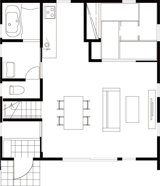 玄関を抜けたらまず快適なリビングが広がります。リビング階段のため、家族が帰って来ると必ず顔をあわせることができ、コミュニケーションも活発に。広々とした快適なリビングで家族団欒の時間を楽しむことができるほか、しっかりとした客間として利用できるコンパクトな和室も備えています。