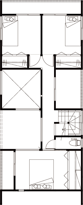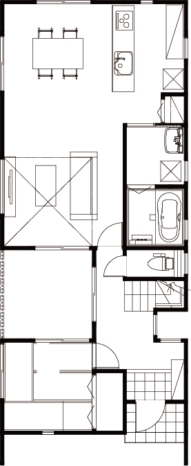 住むひとに精神的な豊かさと安らぎを与えてくれる中庭。家の内側から自然の清々しさを感じられる素敵な空間となります。吹き抜けから光が降り注ぐ独特な開放空間は、家族共通の和みスペースとしてピッタリです。また、中庭は採光をたっぷりとれる上、プライバシー性が高く、住宅密集地におすすめです。光や風、雨さえもインテリアの一部として取り入れることができる中庭のあるプランです。