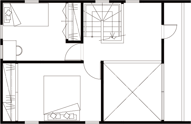 階段を上がってベランダを挟んだ場所に、広々とした2階ホールを設けました。ベランダ側の日差しの直射を利用して室内干しも可能です。また、広さを活かしてパブリックなワークスペースとしても活用できます。
