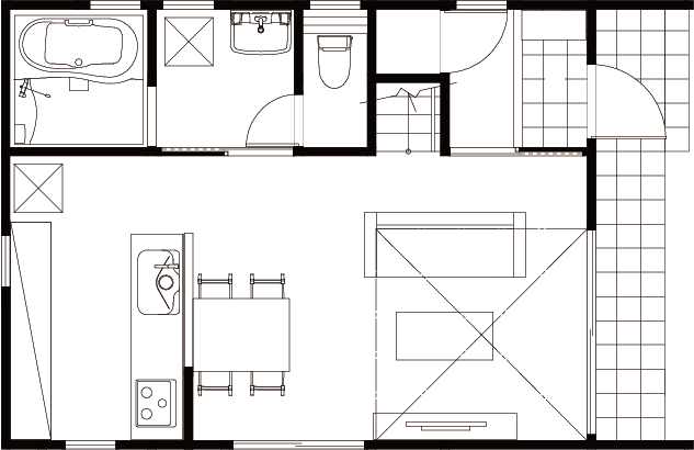 無垢スタイルの『無垢ボックス』は、家庭菜園を楽しむために生まれた注文住宅です。広々としたウッドデッキのついたプラン。天気の良い日は第2のダイニングとして食事がとれる広さです。外と一体になる開放的なリビングダイニングで食事しやすいカウンターキッチン。庭で採れた野菜を調理して食べる。コンポストで自家製堆肥をつくり、食物を育てて収穫し食べることを通じて子どもにいのちの大切さを伝えることができます。