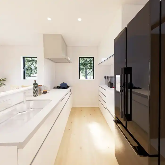 どこでコストを抑えるかを考えたときに、一定の仕様ルールを設け、セミオーダー型の規格住宅で合理化することで実現しました。建築費を上げているのは、「材料の無駄使い」や「購入の手間」「職人さんの手間」「工事期間の長期化」などです。そうした様々なムダを徹底的に減らすルールを設けることで高いクオリティとコストダウンを同時に実現しました。