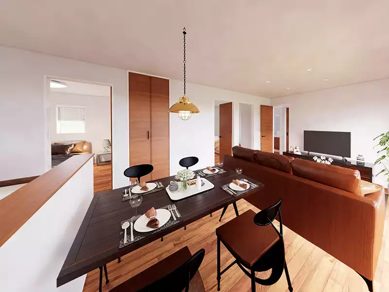 住まいの中心にリビングがあるのが平屋の特徴です。リビングからどの部屋にもアクセスができ、無駄な動線を極力省くことで、ストレスを感じない暮らしを実現できます。またこれらの特徴からバリアフリーの面を持ち、高齢になってからも安心して暮らすことができます。