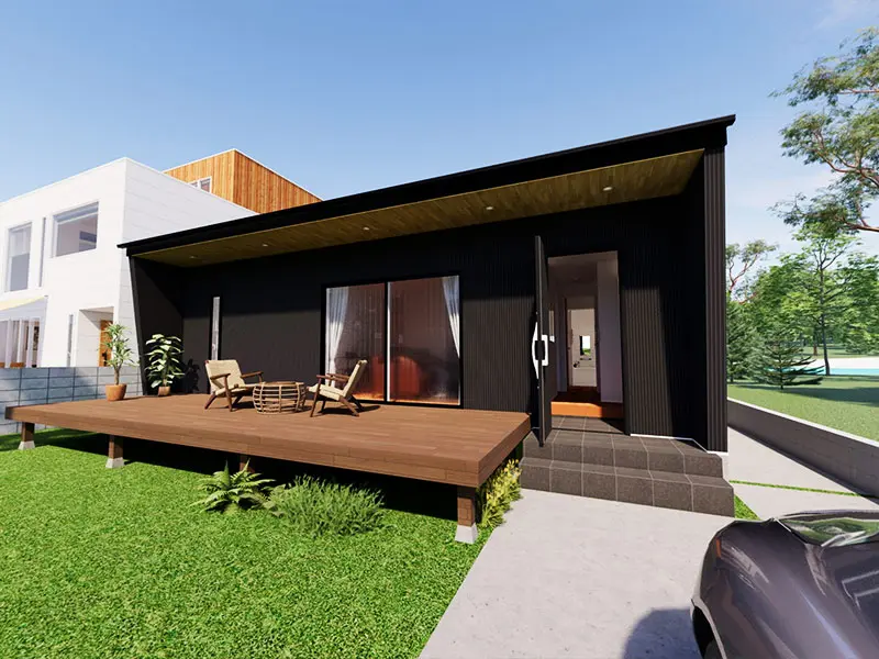 昔から日本家屋の主流であった平屋住宅を、現代の技術とセンスを加え現代人のためにデザインした『無垢グランド』。ワンフロアで家事やコミュニケーションが完結し、住む人の生活動線の負担を最小限に軽減してくれます。家全体が心地良く快適に暮らせるストレスフリーでもあり、バリアフリーでもある住まいカタチです。ウッドデッキとつながるリビングの窓を開ければ、光と風が家全体を包み込む開放的な空間に変化します。