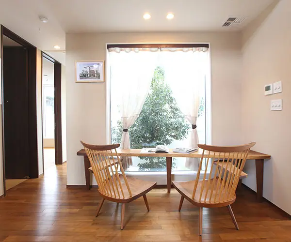 中庭を囲むコの字型の間取りのため、風通しが良く、どの部屋からでも暖かい光が差し込みます。お家の中でも常に四季を感じられる中庭を鑑賞しながら、趣味にふけることが可能です。