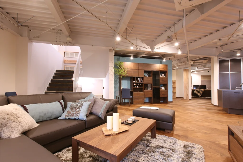 落ち着いた雰囲気のインテリアでコーディネートしたラグジュアリースタイルエリアです。フレンチヘリンボーンの床が空間のアクセントになっています。