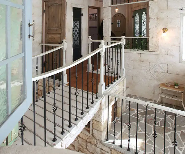 エントランスホールに優雅で華輦なインパクトを与えてくれるサーキュラー階段は、グリーンアンドハウスの細部までこだわる造形仕上げで古く美しく見せるサーキュラー階段となります。