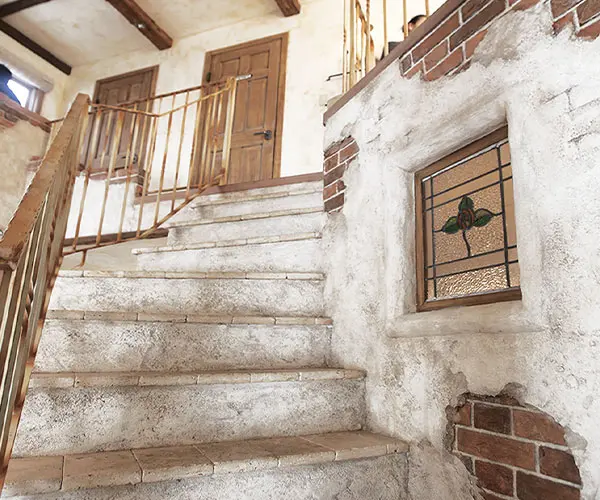 モルタル造形、造作建具、エージング塗装、金属・ガラス加工などの長年培ってきた技術を融合し、まるでおとぎの世界のような空間を再現。同じものはつくらない、お客様だけの、世界に一つだけの住まいをお届けします。