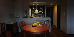 リノベーションでLDKと和室を一体化させ、グレーやダークブラウンといったトーンを統一させ、開放的で大人な空間に大変身。LDKで過ごす時間が増えたとH様も大満足のお住まいです。