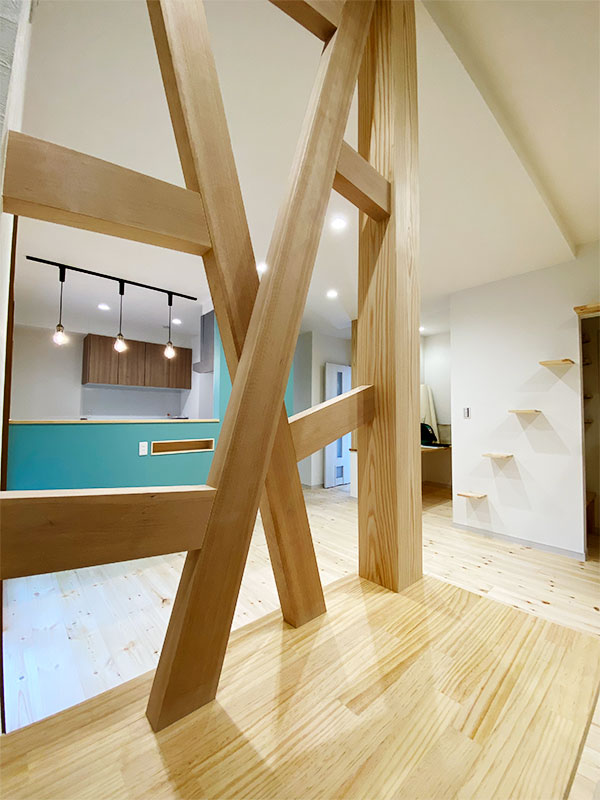 耐震上残す必要があった筋交いを、ただ残すだけではつまらない。