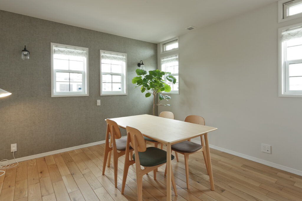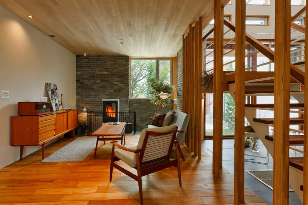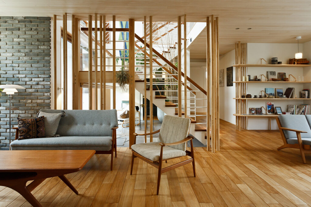 開放感のあるスケルトン階段や吹き抜けがモダンで温かな雰囲気を演出します。