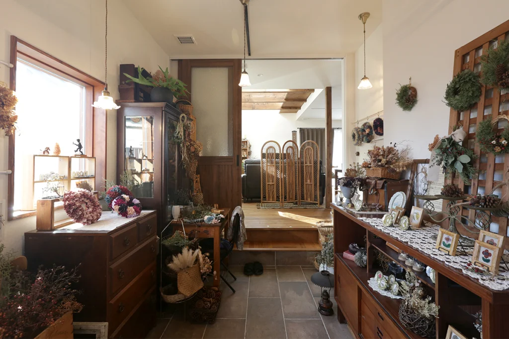 埼玉県さいたま市のK様邸は、アンティーク、自然素材…大好きなものに囲まれたハンドメイド雑貨のお店『nono』を併設した店舗併用のお住まいです。