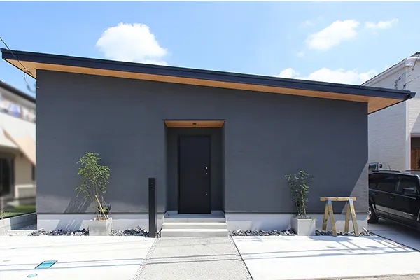 埼玉県桶川市のN様邸は、あえて玄関面には窓を作らず、直線美を意識した外観の平屋のお住まいです。住宅街で、限られた敷地の中でも工夫した間取りの平屋は、小さいお子様がいても安心して暮らすことができ、家族が集まる温かな空間です。平屋のシンプルな間取りは、お子様が巣立った後も、ご夫婦で長く快適に暮らすのに最適な住宅です。