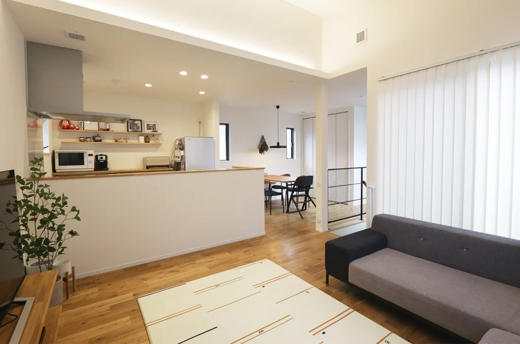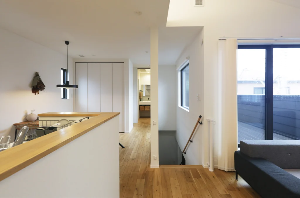 埼玉県桶川市のK様邸は、住宅や建築に携わっているご夫婦が建てた、センスとこだわりが形になった素敵なお住まいです。2階リビングが特徴で、家事など生活をスムーズにするための動線が考えられた設計。共働きでも暮らしやすい間取りに仕上がっています。