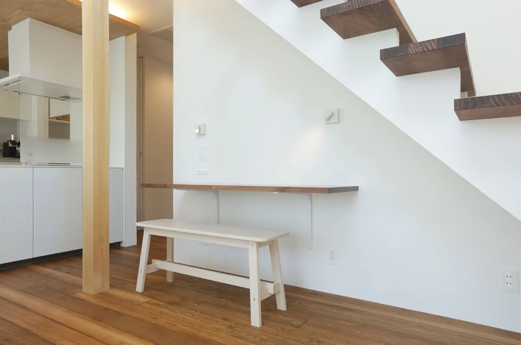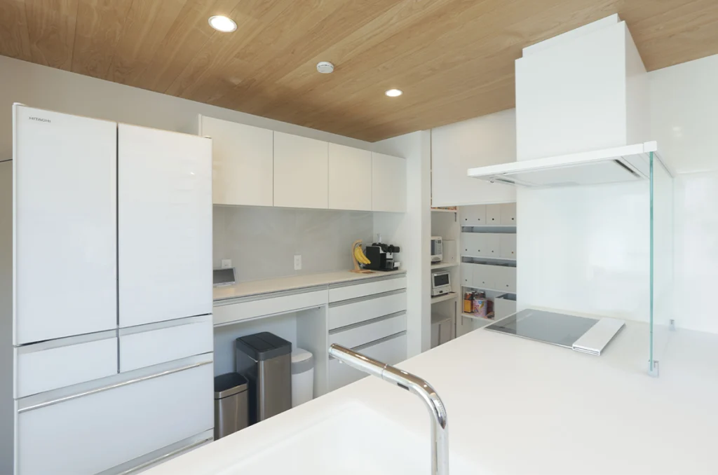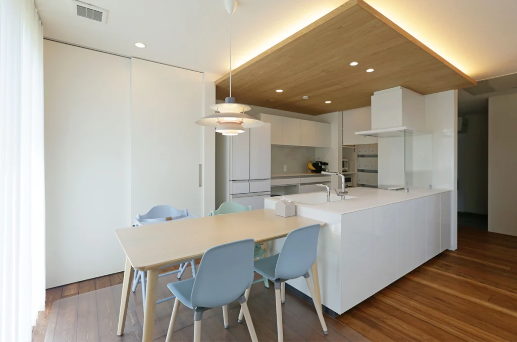 無垢の床はサラッとしていて触り心地がよいところが魅力だと思います。軒の木張りやキッチンのおり下げ天井など偽物を使わないことで、満足度が上がりました。