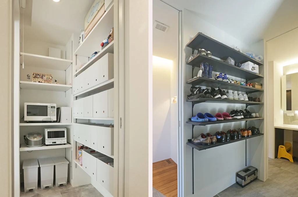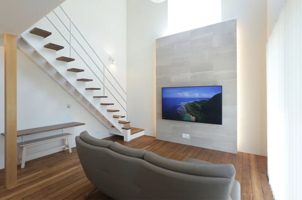 外観とリビングの吹き抜けがおしゃれな雰囲気で、リゾートに来たような感じになれるところが気に入っています。ビルトインガレージは雨の日も濡れずに家の中に入ることができ、洗面台やキッチン周りも使い勝手がよく家事がしやすくなりました。