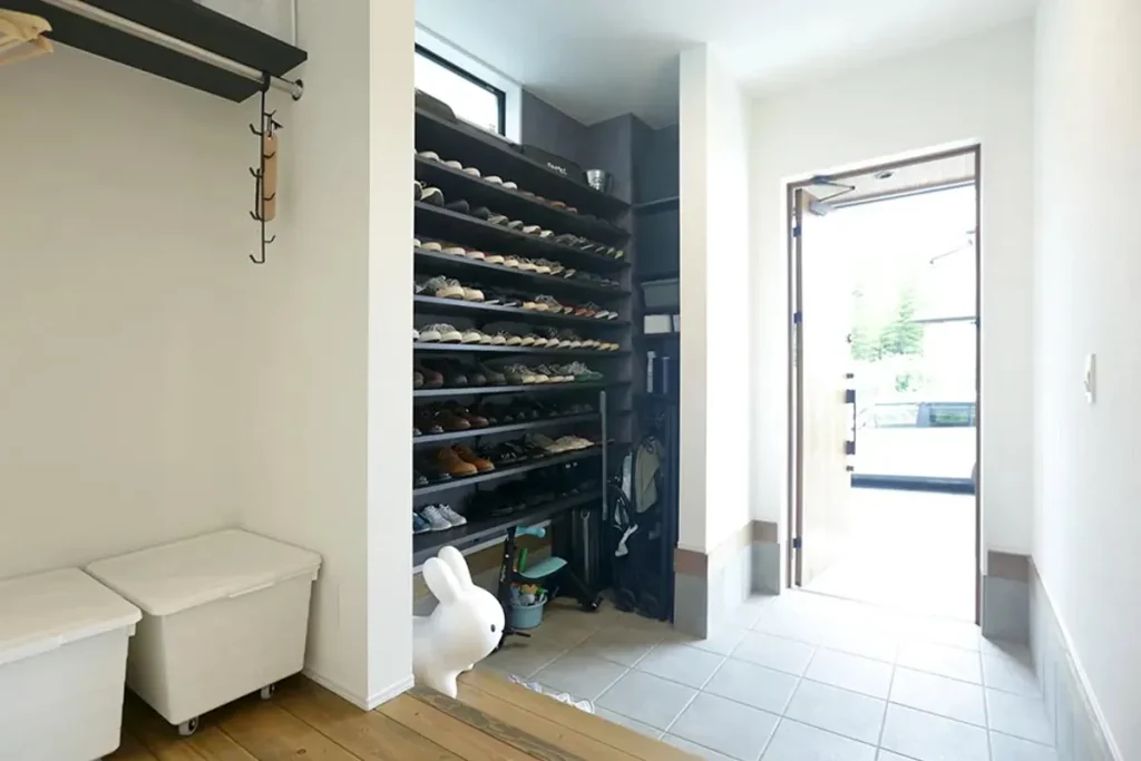 注文住宅ですので自分たちが住みやすい間取りを常に考え、動線を1番意識していました。特にいかに家事が楽になるかを追求した結果、玄関・クローゼット・本棚を見せる収納にしたので、デザインにはこだわりました。(ご主人)