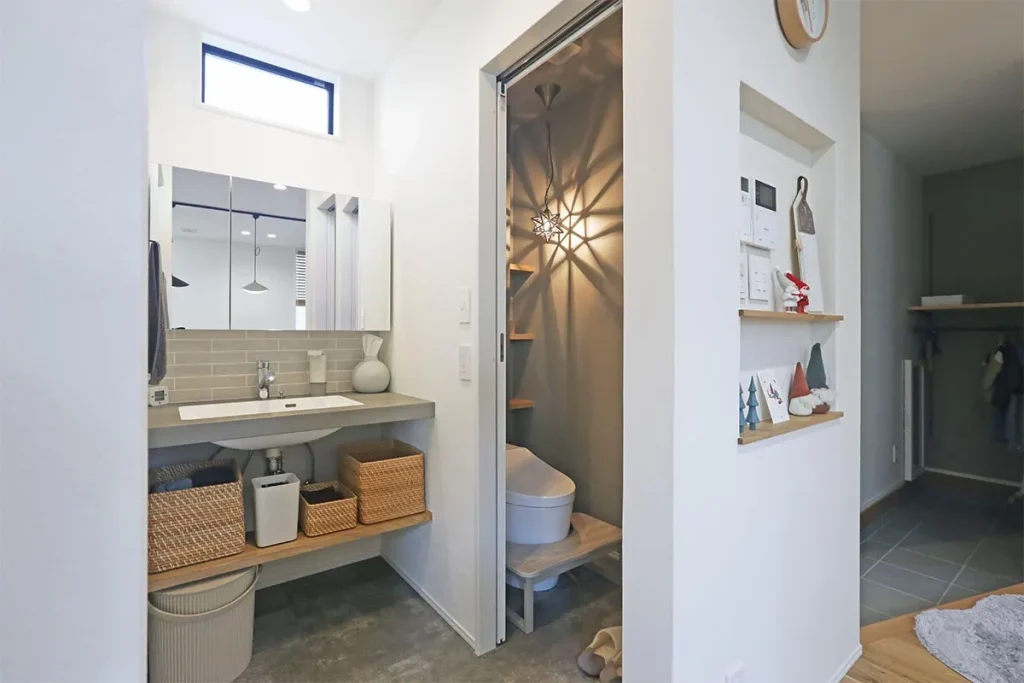 回遊動線はできませんでしたが、水回りを集約させた事で家事効率はとても良いです。